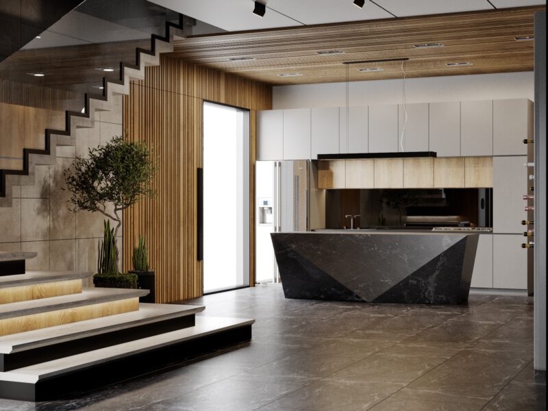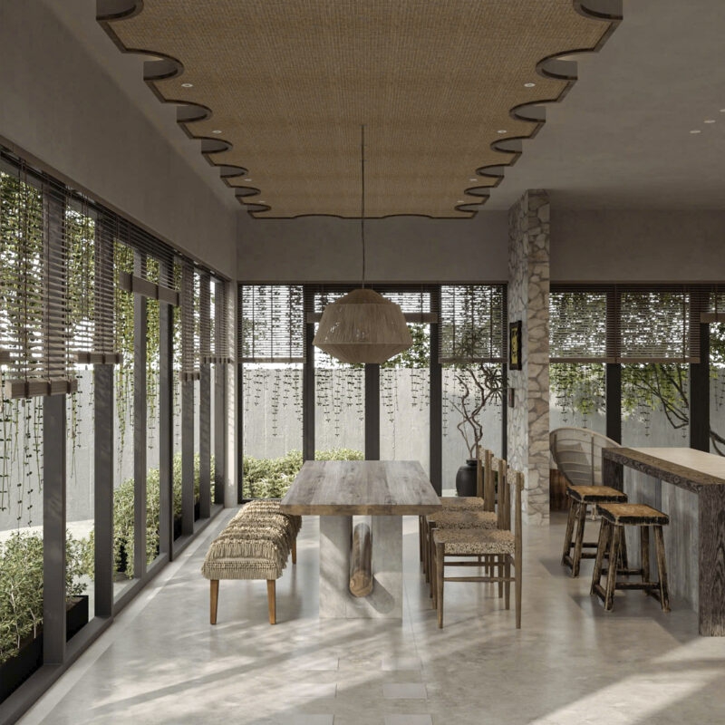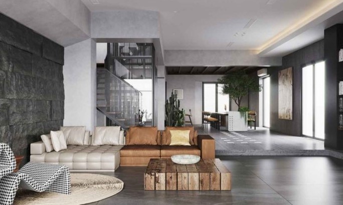 Trắng - xám - gỗ tự nhiên, tạo cảm giác thanh lịch và sang trọng.